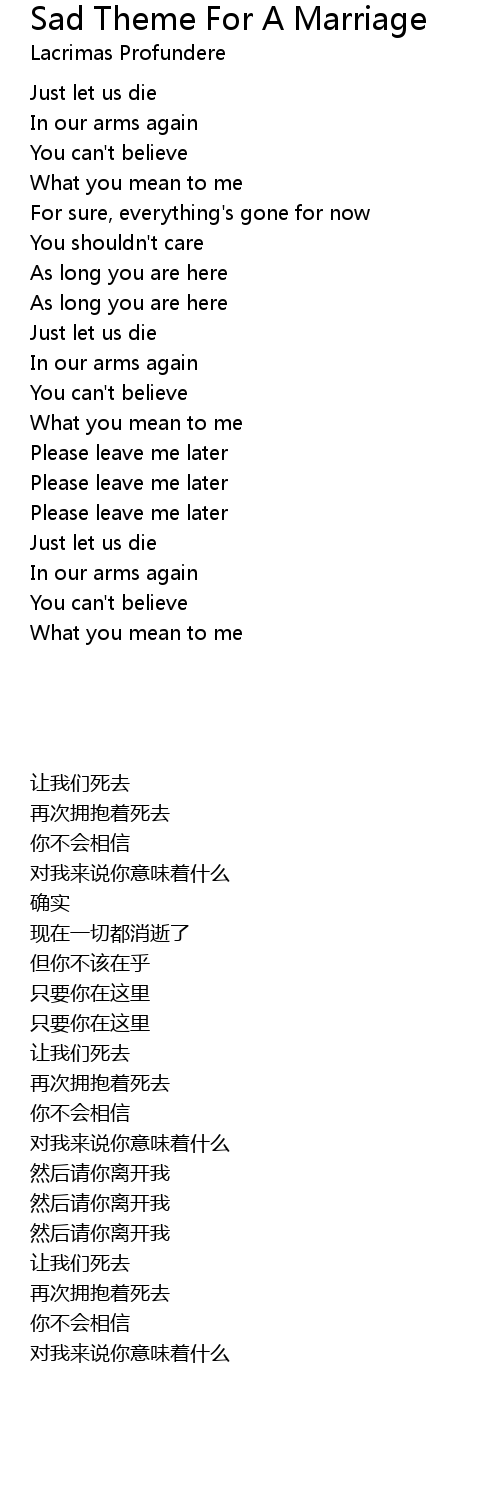 | Song | Sad Theme For A Marriage |