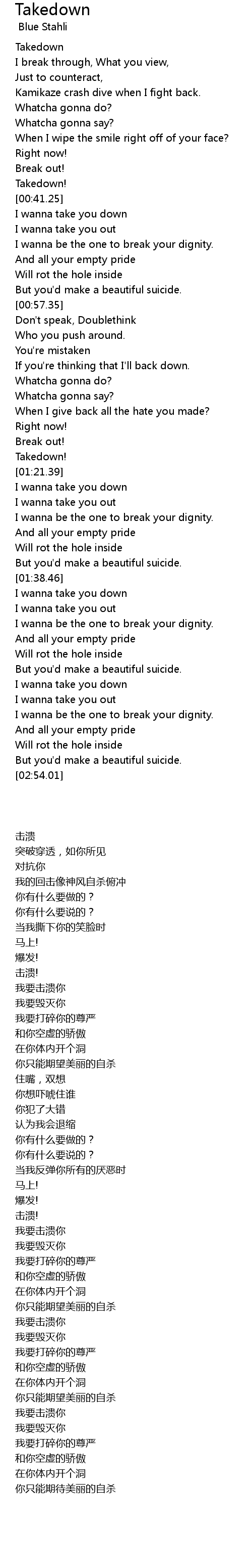 I wanna take you down |