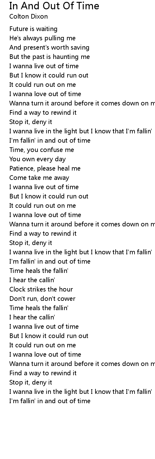I'm fallin' in and out of time |