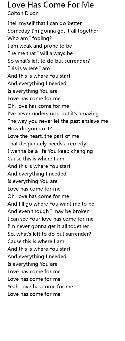 Love Has Come For Me Lyrics
