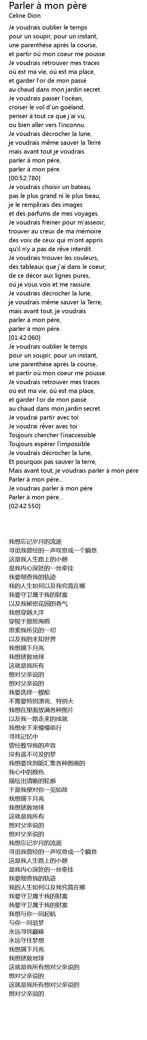 | [02:32.900] | Je voudrais parler à mon pè re |