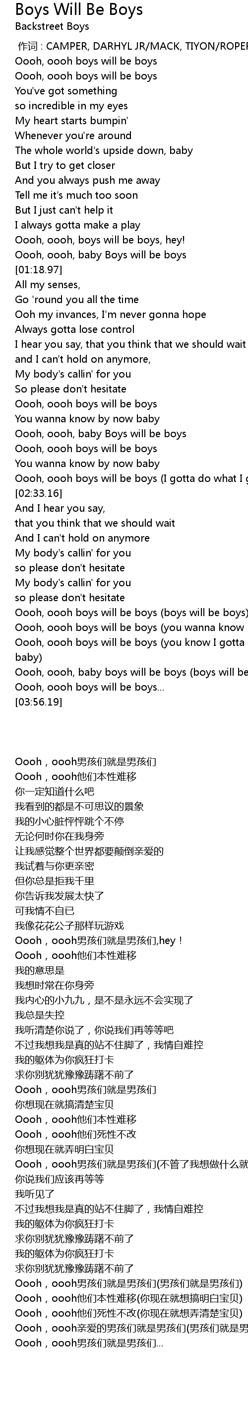 | [03:34.91] | Oooh, oooh, baby boys will be boys boys will be boys |
