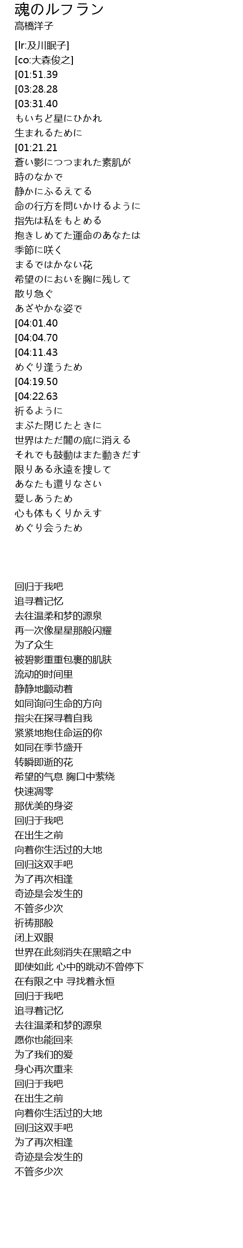 | [00:01.90][01:51.39][03:23.53][03:56.50] | 私に還りなさい |