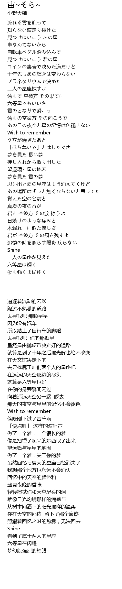 | [00:39.020] | 見つけにいこう 君の星 |