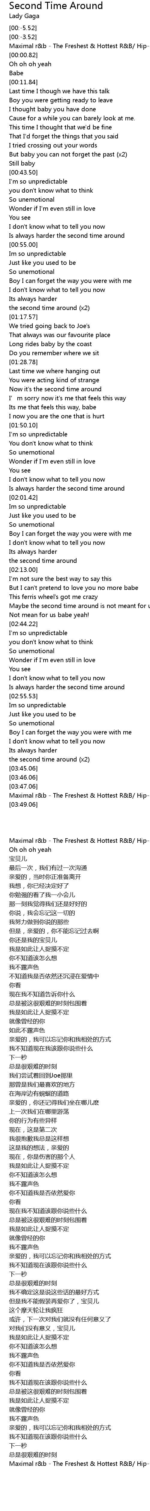 | [01:05.26] | the second time around x2 |