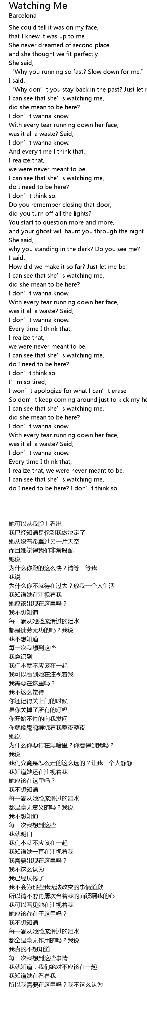 | [00:50.630] | I can see that she' s watching me, |