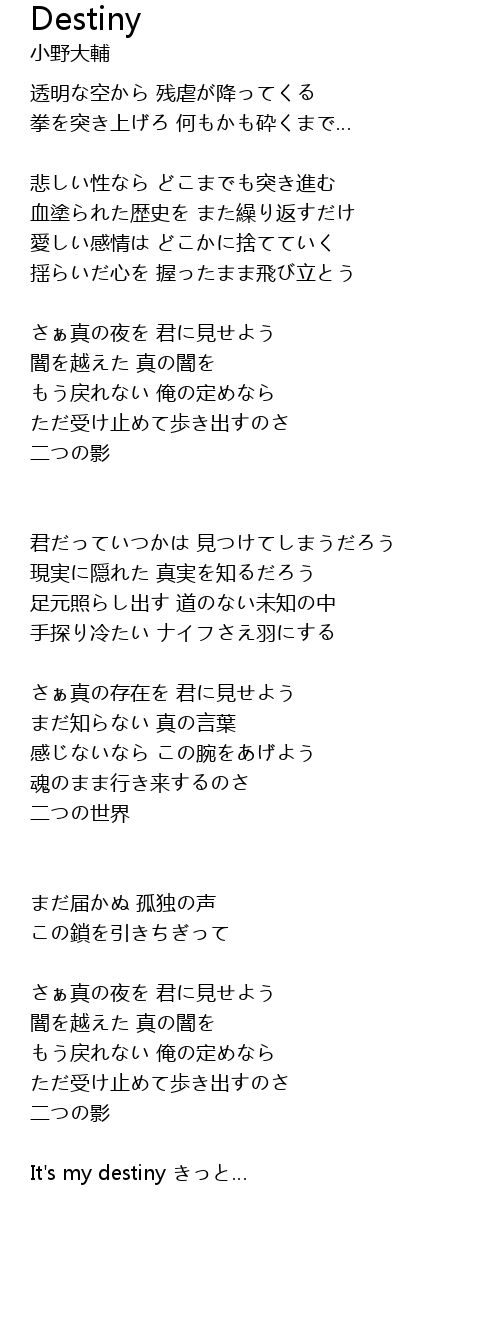 | Album | TVアニメ“モノクローム・ファクター”キャラクターソング Factor 1 二海堂 昶“Destiny” |