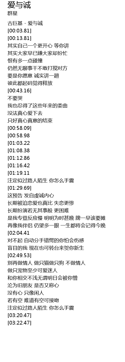 | [00:01.81] | 古巨基 - 爱与诚 |