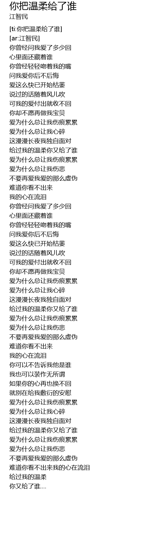 | [04:12.142] | 给过我的温柔你又给了谁 |