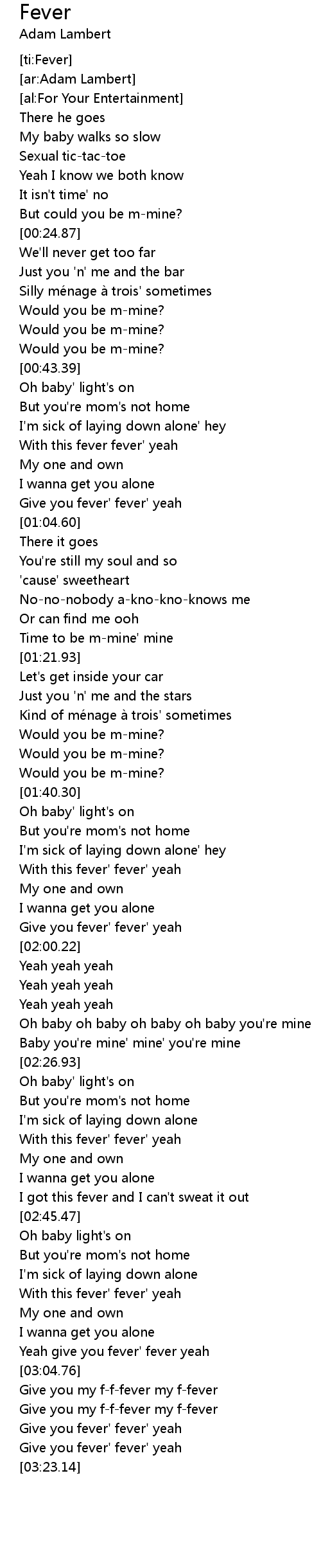| [03:05.35] | Give you my f-f-fever my f-fever |