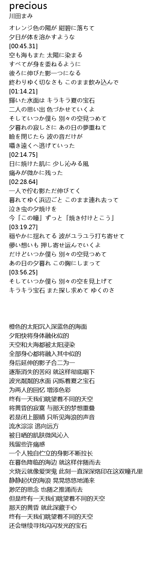 | [01:15.48] | 輝いた水面は キラキラ夏の宝石 |