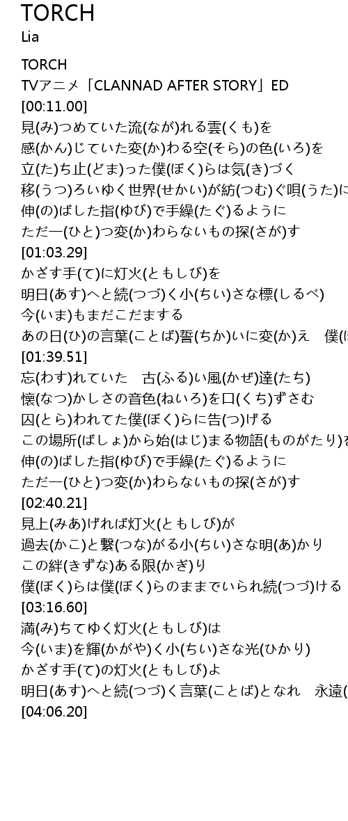 | [00:08.00] | TVアニメ「CLANNAD AFTER STORY」ED |
