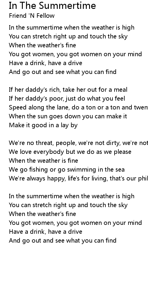 In the summertime when the weather is high |