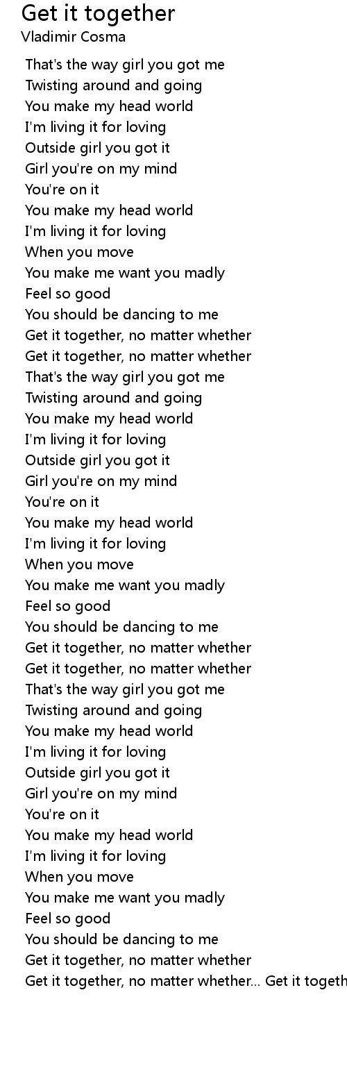 | [02:50.176] | Get it together, no matter whether... Get it together! |