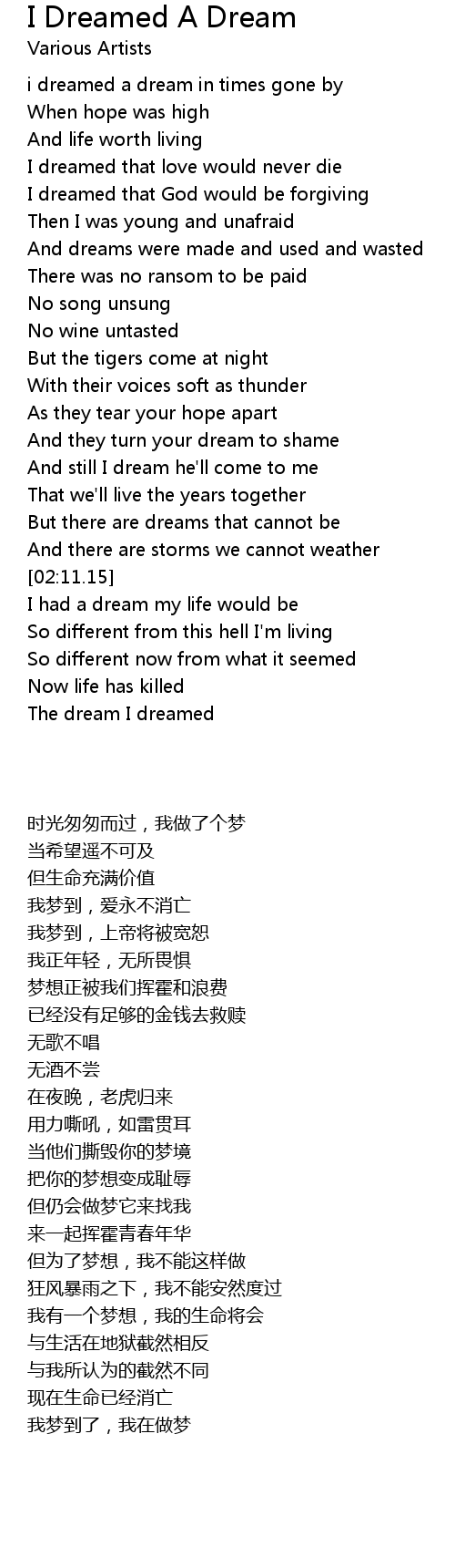 i dreamed a dream in times gone by |
