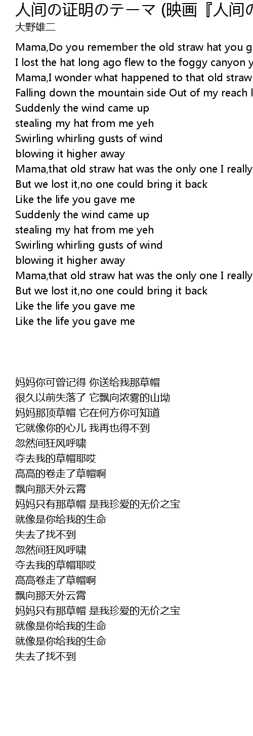 Mama,that old straw hat was the only one I really loved |
