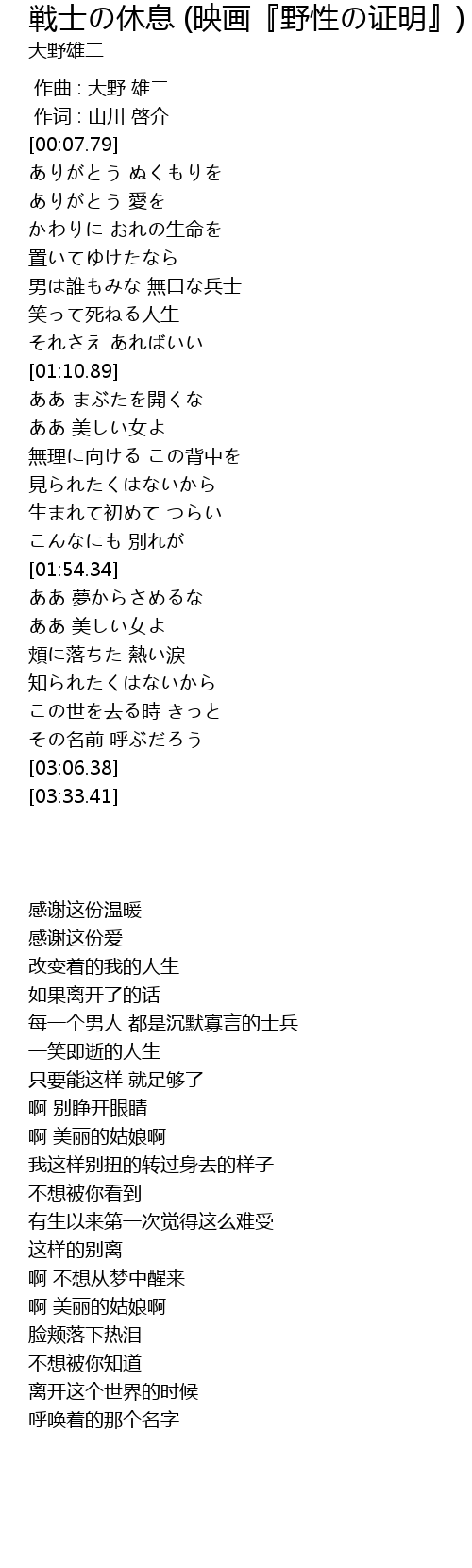 | [00:44.73] | 男は誰もみな 無口な兵士 |