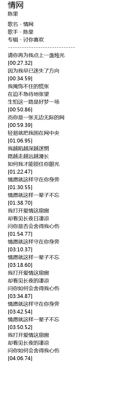 | [01:01.64] | qīng yì jiù bǎ wǒ kùn zài wǎng zhōng yāng |