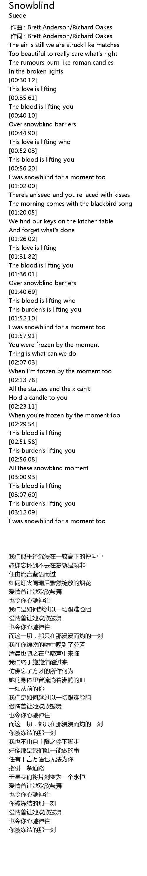 | [00:01.00] | zuò cí : Brett Anderson Richard Oakes |