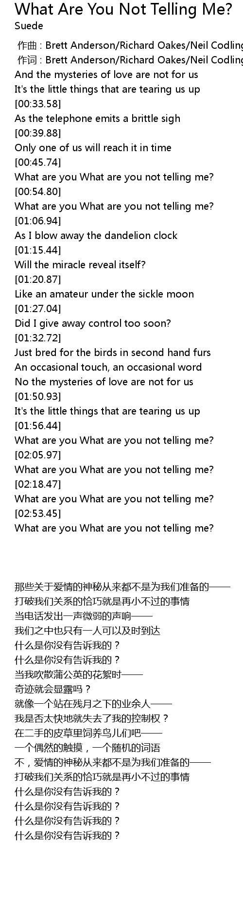 | [00:01.00] | 作词 : Brett Anderson/Richard Oakes/Neil Codling |