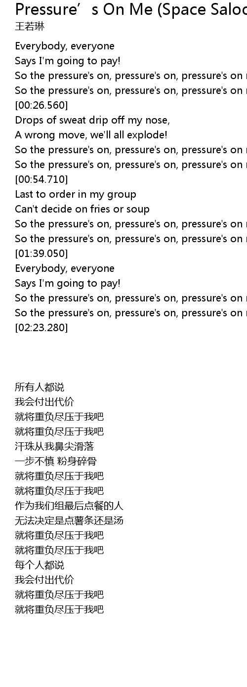 So the pressure's on, pressure's on, pressure's on me! |