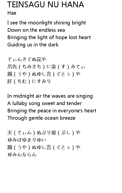 | 天(てぃん)ぬぶり星(ぶし)や | |