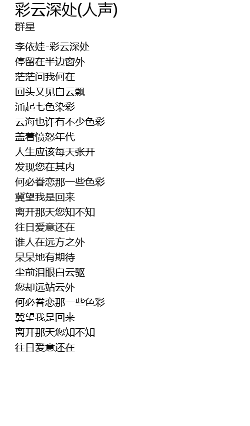 | [00:00.32] | lǐ yī wá cǎi yún shēn chù |