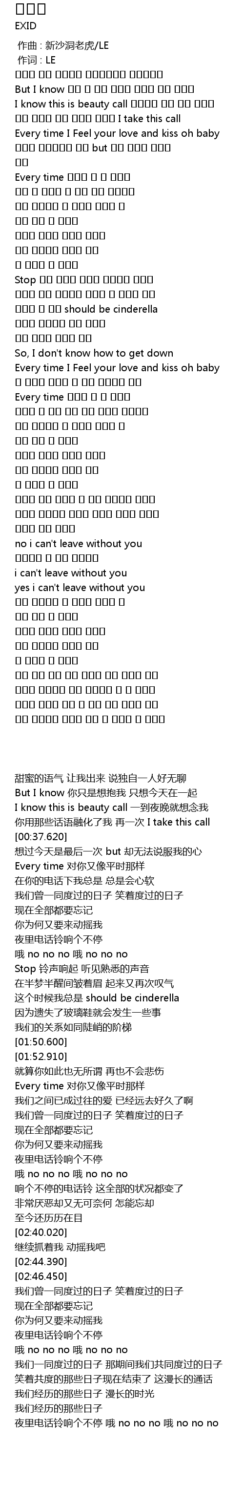 | [00:00.00] | 作曲 : 新沙洞老虎/LE |