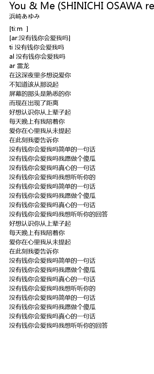 | [00:12.840]al 没有钱你会爱我吗] | |