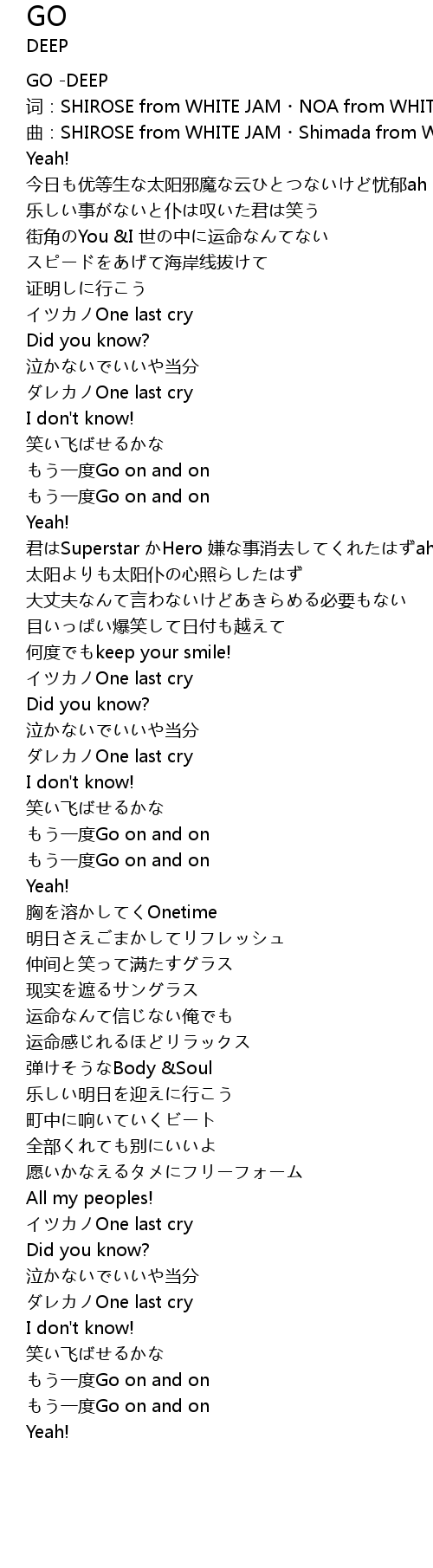 | [00:01.850] | 词:SHIROSE from WHITE JAM・NOA from WHITE JAM BEATZ |