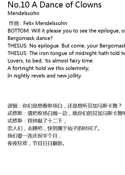| [00:05.500] | THESUS: No epilogue. But come, your Bergomask. |