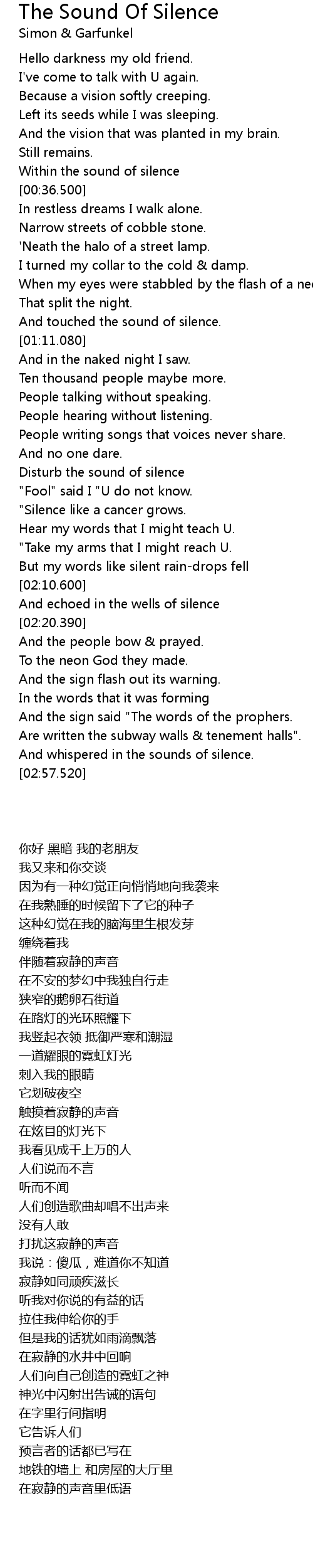 And whispered in the sounds of silence. |