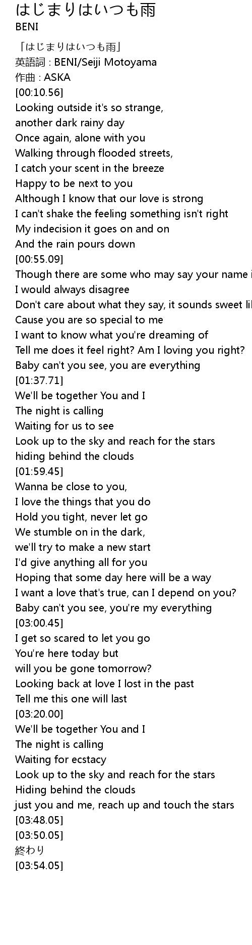 [00:04.56] 英語詞∶BENI/Seiji Motoyama