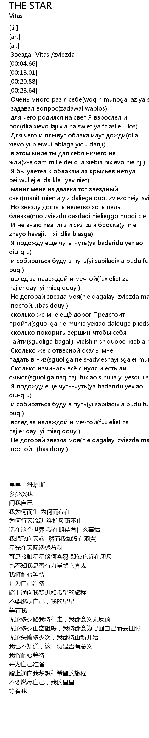 | [00:00.00] | Звезда -Vitas /zviezda |