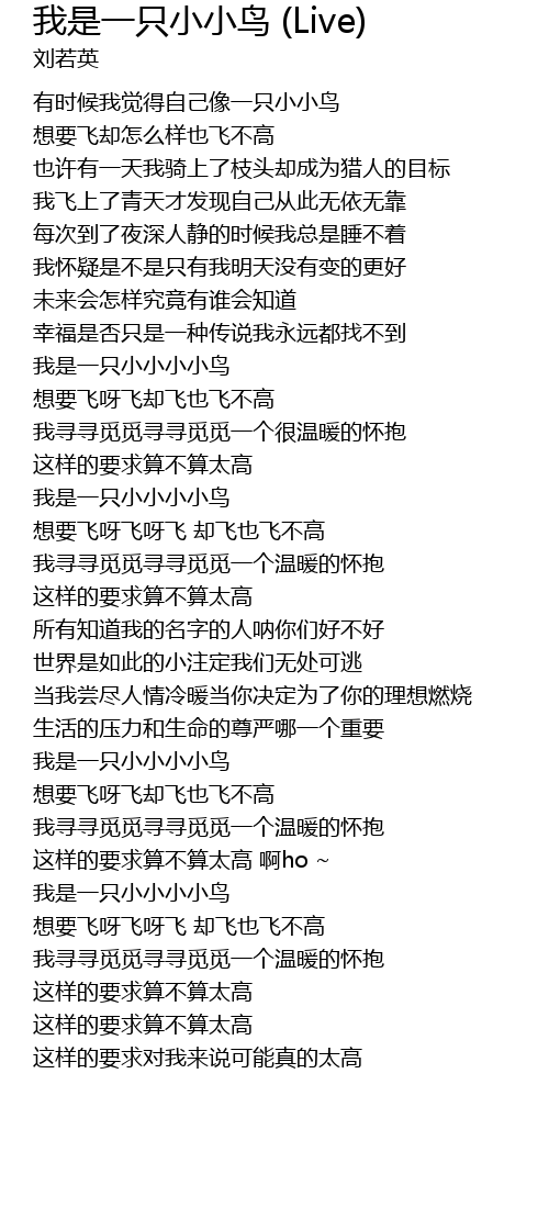 | [03:04.890] | wǒ shì yì zhī xiǎo xiǎo xiǎo xiǎo niǎo |