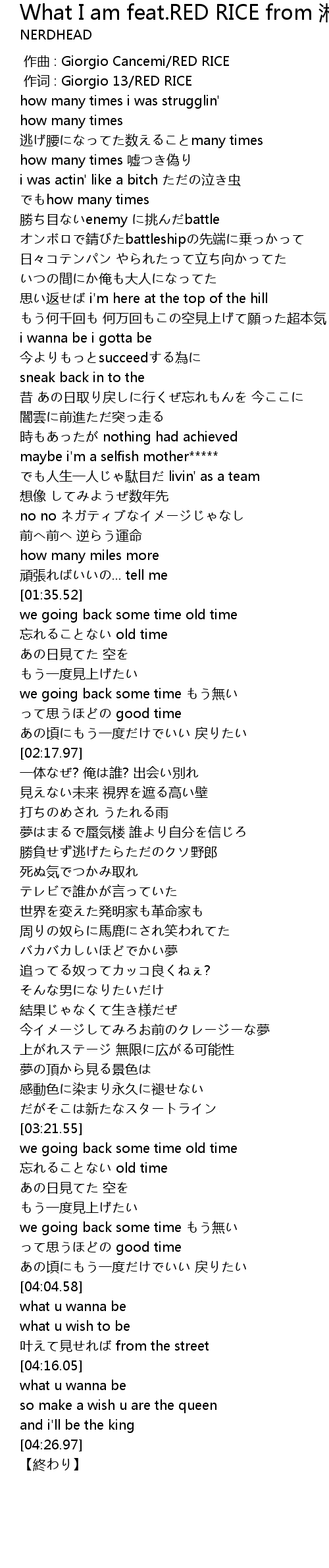 | [00:01.00] | 作词 : Giorgio 13/RED RICE |