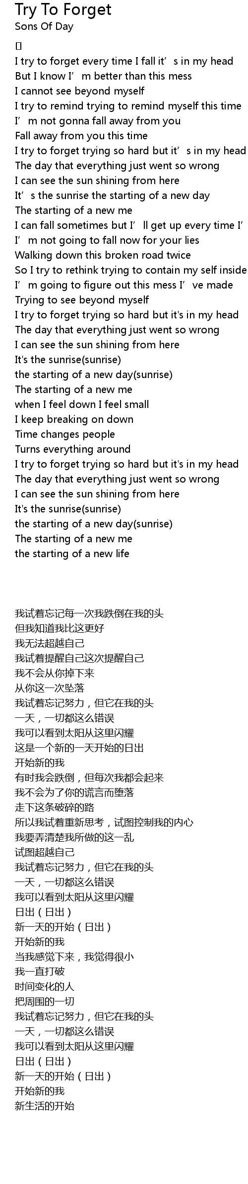 | [01:38.325] | I try to forget trying so hard but it' s in my head |