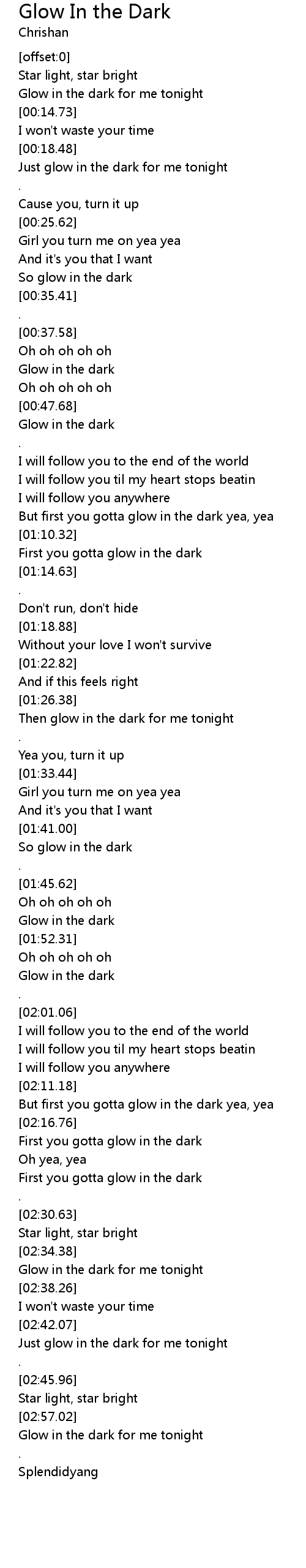 | [02:35.38] | Glow in the dark for me tonight |