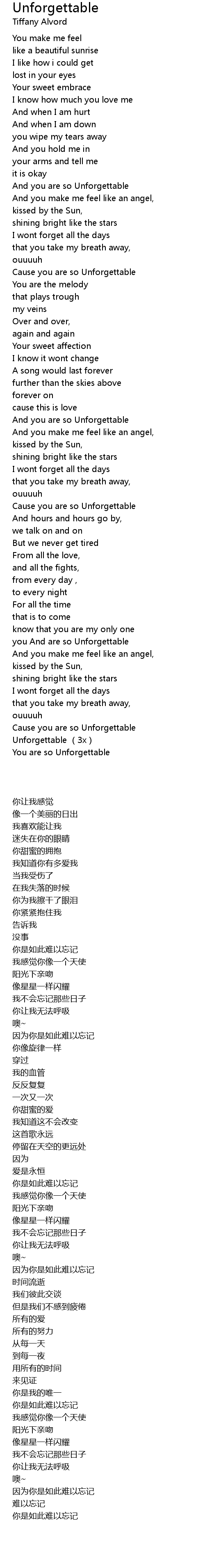 | [02:15.320] | Cause you are so Unforgettable |