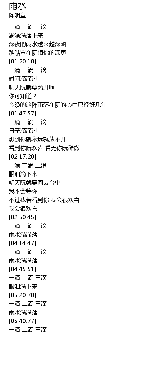 | [05:34.61] | yǔ shuǐ dī dī luò |