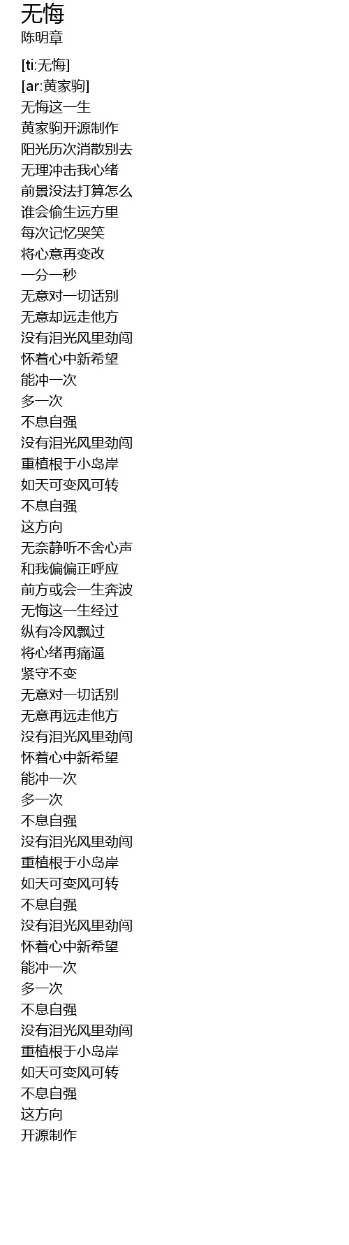 | [00:18.436] | wú huǐ zhè yī shēng |
