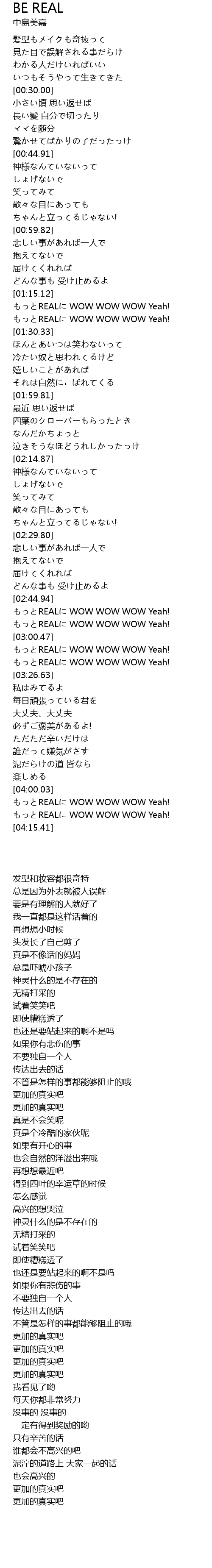 | [03:16.03] | もっとREALに WOW WOW WOW Yeah! |