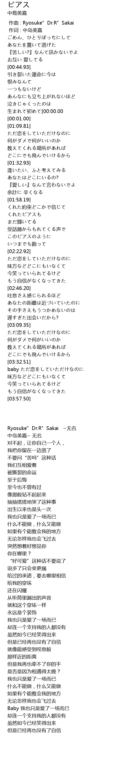 | [00:00.00] | zuo qu : Ryosuke" Dr. R" Sakai |