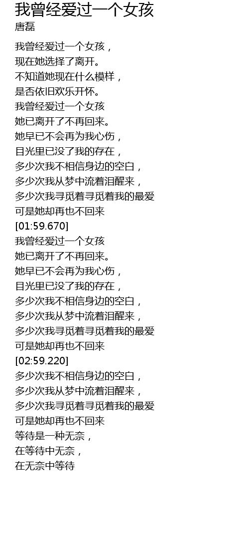 | [02:03.490] | 我曾经爱过一个女孩 |