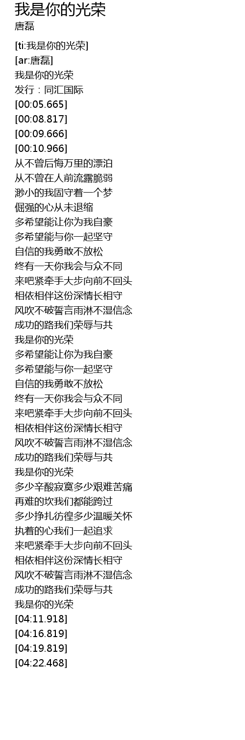 | [04:01.166] | wǒ shì nǐ de guāng róng |