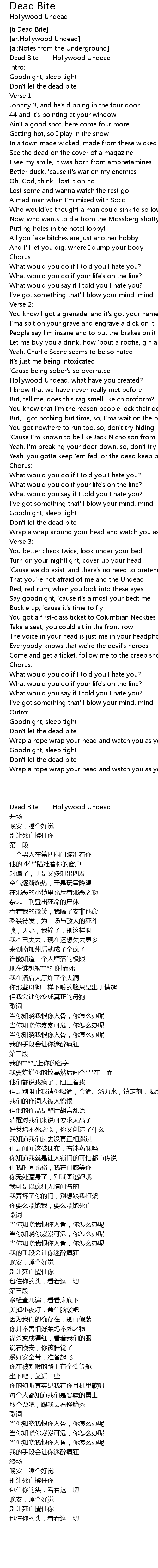 | [00:01.44] | Dead Bite——Hollywood Undead |