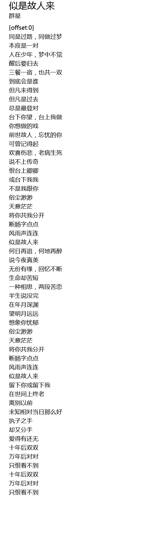 | [00:18.34] | tóng shì guò lù, tóng zuò guò mèng |