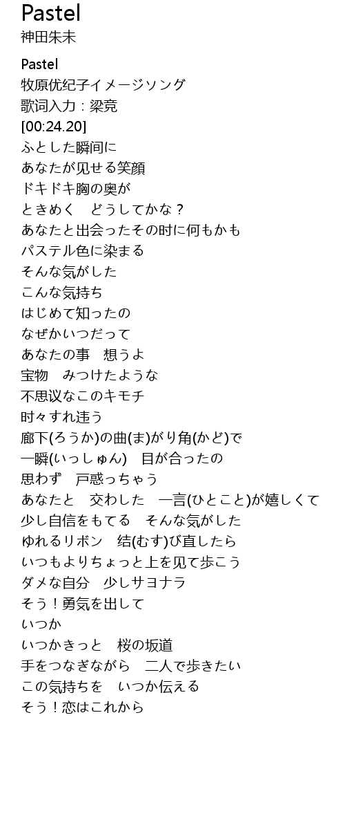 | [03:43.25] | 手をつなぎながら 二人で歩きたい |