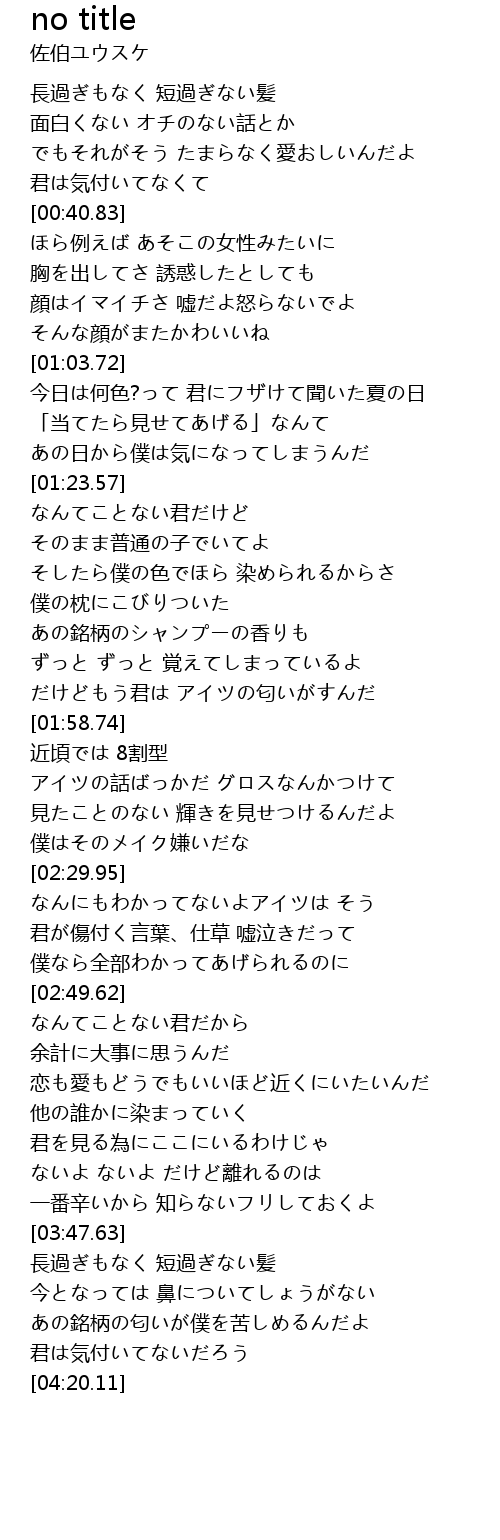 | [03:55.77] | 長過ぎもなく 短過ぎない髪 |