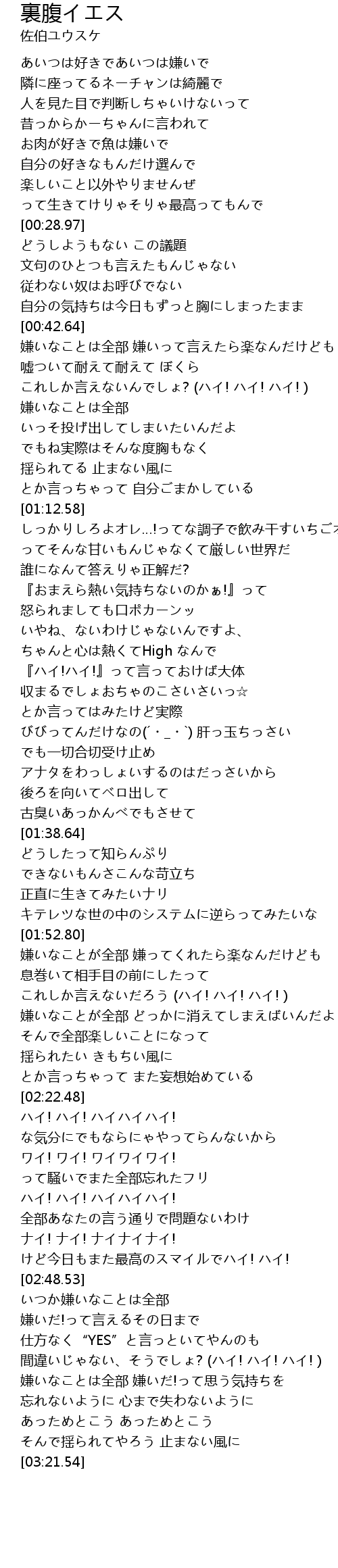 | [02:55.72] | 仕方なく“YES”と言っといてやんのも |